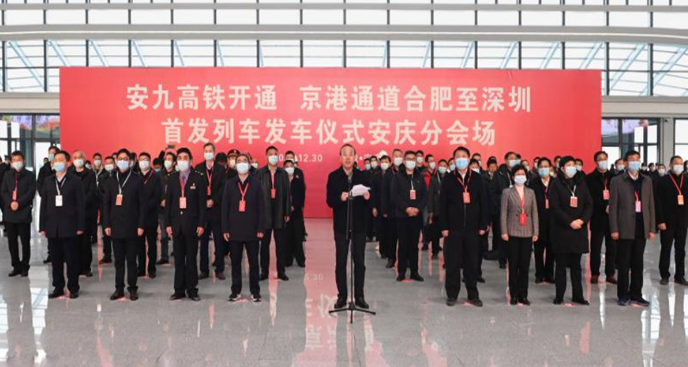 2021年12月30日8時(shí)58分,首趟G4791次復(fù)興號(hào)列車從合肥南站駛出,開往安慶西站、潛山站、太湖南站、宿松東站,最后到達(dá)深圳北站。當(dāng)天,市委書記張祥安在安九高鐵開通京港通道合肥至深圳首發(fā)列車發(fā)車儀式安慶分會(huì)場(chǎng)出席并講話,市領(lǐng)導(dǎo)張君毅、花家紅、王愛武在安慶分會(huì)場(chǎng)參加儀式。